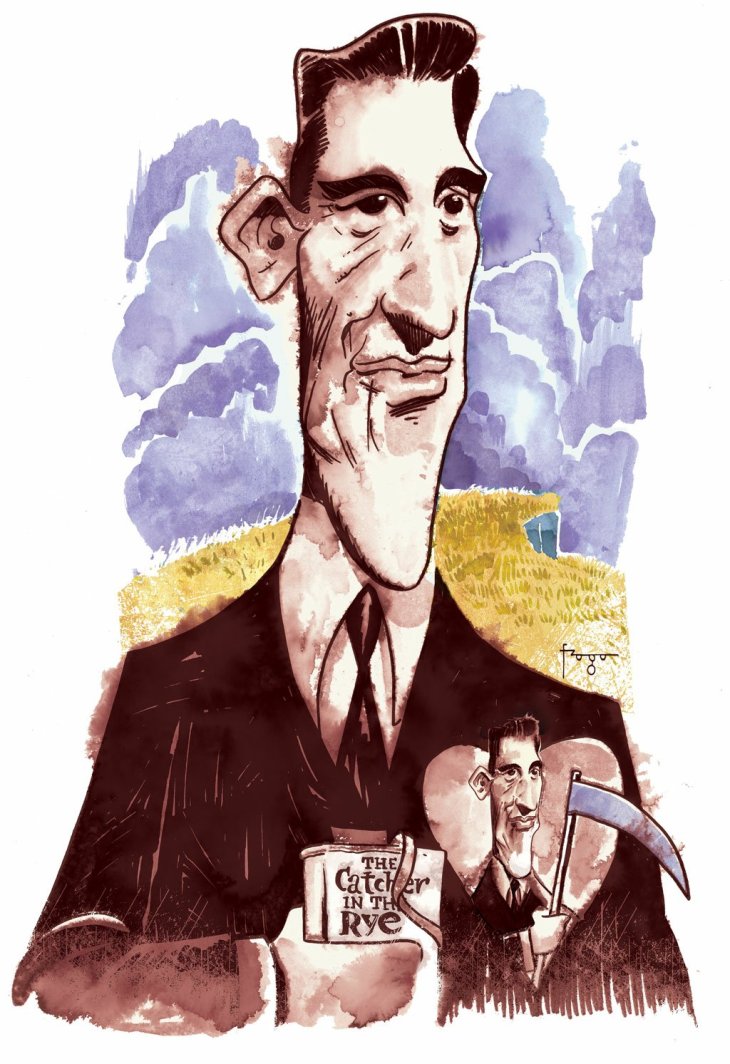 J.D. Salinger sofreu dois traumas relacionados ao cinema. Em 1942, aos 24 anos, começou a se encontrar com a filha do dramaturgo Eugene O’Neill, Oona O’Neill, de 17 anos, a Debutante do Ano daquela temporada no Stork Club de NY. Antes dele, Oona já tinha namorado o cartunista Peter Arno e o cineasta Orson Welles. Embora comentasse com um amigo que “a pequena Oona está loucamente apaixonada pela pequena Oona”, Salinger ficou apaixonado pela moça e só a guerra os separou, mas a troca de cartas continuou intensa, até que um dia ela parou de responder. Foi pelos jornais, já no exército dos Estados Unidos, que Salinger ficou sabendo do casamento dela, um mês depois de completar 18 anos, com o Rei do Cinema, Charles Chaplin, então com 54 anos. Uma carta da época dá uma medida da mágoa de Salinger: “Posso vê-los nas noitadas caseiras. Chaplin agachado cinzento e nu, em cima da cômoda, balançando sua tireoide ao redor da cabeça com a bengalinha de bambu, como um rato morto. Oona, num vestido água-marinha, aplaudindo loucamente do banheiro”.