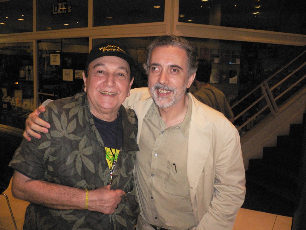 Apresentado a Trueba por Nat Chediak (a quem conheci em 2000, em uma das primeiras reuniões do Grammy Latino, em Los Angeles), acompanho com interesse e fissura a longa gestação de um filme que deverá fazer justiça à grande arte de Tenório Jr. Então, para ler ao som de Embalo. E, para ilustrar, ao lado de uma cena e das capas do disco (a versão em CD editada pela Dubas Música em 2004 e a do LP original da RGE), subo duas fotos que fiz do diretor no Rio. Com o saudoso João Donato, em outubro de 2005, quando Trueba exibiu no Festival do Rio O milagre do Candeal, e em 2010. Nesta, ele está entre o guitarrista Arto Lindsay e Marisa Monte, mais o violonista flamenco Niño Josele (um dos artistas que gravou no selo Calle 54, então em uma turnê que passou pelas sedes do Instituto Cervantes no Brasil) e o multi-instrumentista Dadi Carvalho.