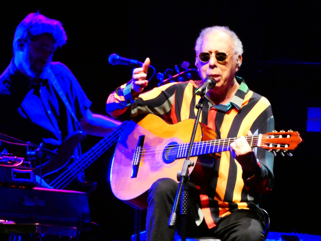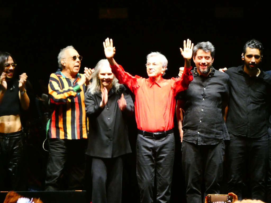 Com apenas sete (longas) faixas, em 37 minutos, o repertório do disco Transa é turbinado com canções afins de Caetano, e ainda dos convidados. Caetano e banda Meu Coco deram início às quase duas horas da apresentação desse 11 de novembro com “You don’t know me”, que também é a de abertura do álbum. Em seguida, duas do LP branco, de 1969, “Irene” (composta no período de dois meses em que esteve preso no Rio, entre dezembro de 1968 e janeiro de 69, como contou ao público) e “Empty boat” (pontuando ser letra “mais broken English do que as de Londres”) e duas do primeiro no exílio inglês, “Maria Bethânia” e “London, London”. Antes de voltar ao disco homenageado, tem um Araçá Azul no bolo, a faixa-título do álbum avant-garde de 1973, que marcou a volta ao Brasil e, na época, bateu recorde em devolução nas lojas – algo, hoje, equivalente a bloquear no streaming, cancelar.