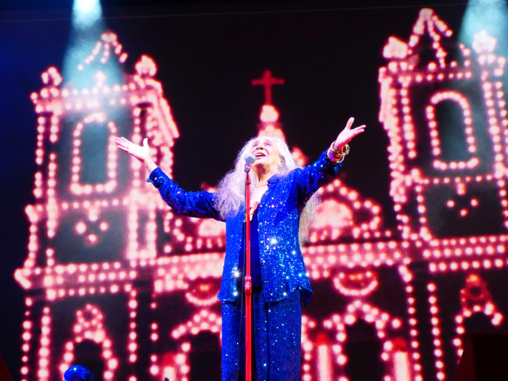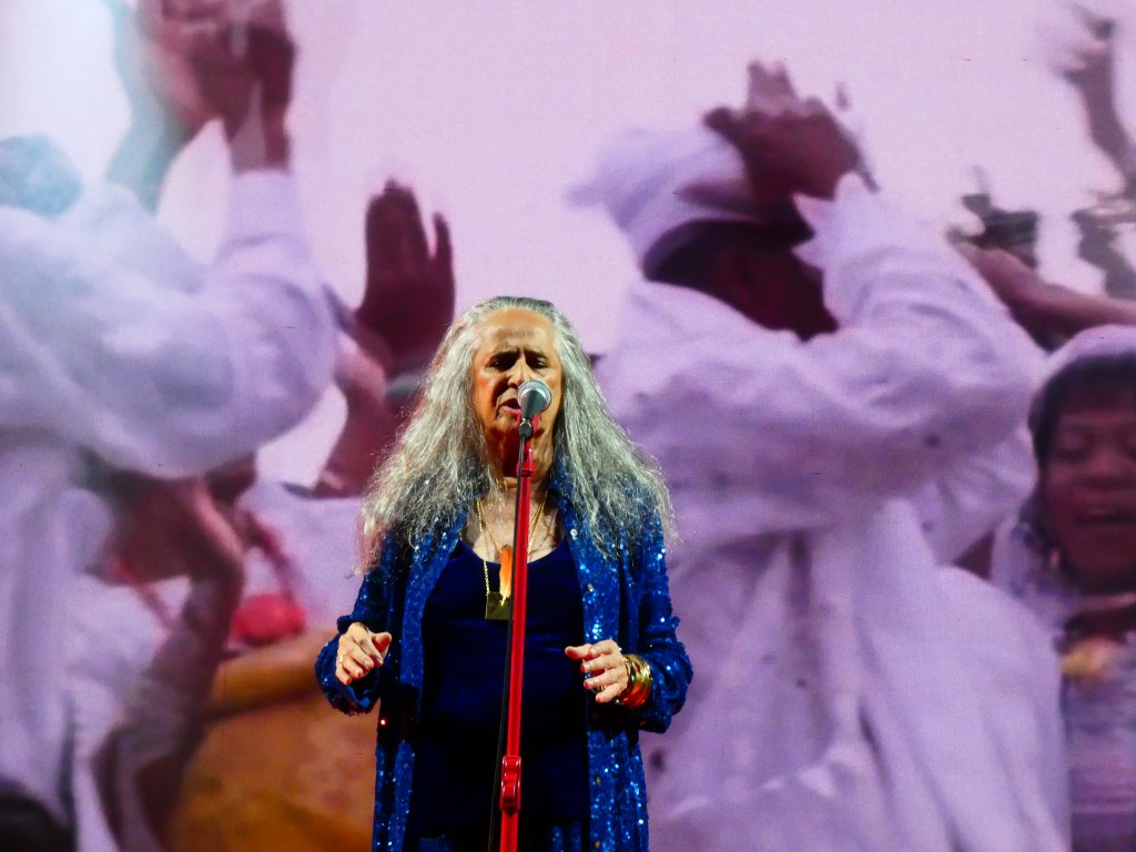 Como uma entidade, longos cabelos brancos soltos, Maria Bethânia bethaniou como sempre. Ela, seis músicos e, em alguns momentos, a participação especial de Tim Bernardes, o paulistano branquelo e magrelo que tem um quê de Lupicínio pop.