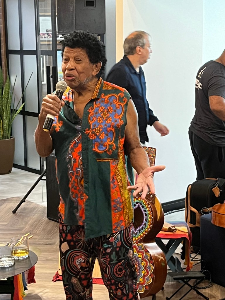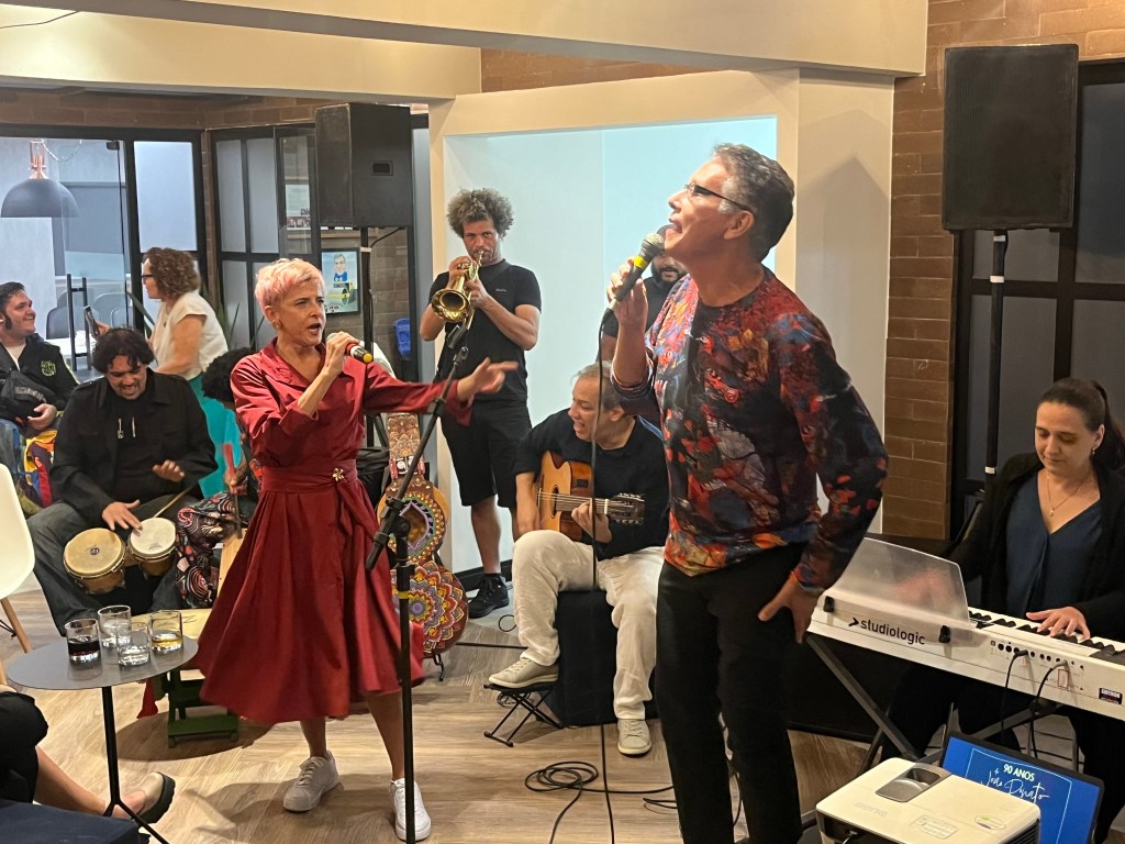 Ontem à noite, em homenagem aos 90 anos que iria completar em 2024, donateamos muito. Na sede da Abramus (a associação de gestão coletiva de Direitos Autorais à qual ele era filiado), João Donato esteve muito presente. Na obra recriada por tanta gente que fez música com ele, a começar pelo filho Donatinho, um dos que se revezou no teclado (com Vanessa Rodrigues e Cliff Korman), e a companheira do último terço de vida, Ivone Belém (e seu filho André). E Robertinho Silva (baterista e percussionista que começou a tocar com Donato em 1982, justamente na sessão de gravação em que Nara Leão apresentou ao mundo “Nasci para bailar”), o trompetista José Arimateia, as cantoras Cris Delanno e Luana Mallet; o cantor Augusto Martins, o violonista Gabriel Improta, o baterista Renato Massa… E outros que passaram pela jam e não sabia ou guardei os nomes.