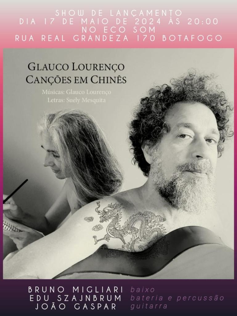 Na sexta-feira, no Eco Som (Rua Real Grandeza, 170, Botafogo), Glauco Lourenço lança seu terceiro álbum, Canções em chinês. É uma bela coleção de músicas com letras (em português) de Suely Mesquita. No palco, Glauco será acompanhado pelo ótimo trio que gravou o disco, Bruno Migliari (baixo), Edu Szajnbrum (bateria e percussão) e João Gaspar (guitarra).