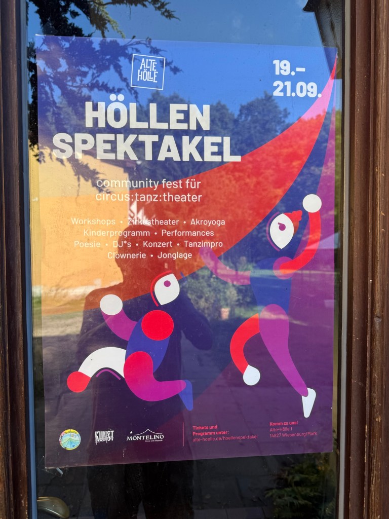 A dez mil quilômetros de distância, na Alemanha, não estaremos presencialmente, mas, coincidentemente, em evento que está na mesma sintonia por um mundo melhor, mais igualitário, inclusivo, sem preconceitos. O Höllen Spetakel começou nessa sexta-feira e vai até domingo, no que foi um hotel em meio a uma floresta na pequena cidade de Wiesenburg/Mark. O local, atualmente uma comuna de artistas alternativos de dança, acrobacia, artes cênicas em geral, abriga o festival com programação a partir da manhã: yoga, acrobacia-yoga, roda de poesia e teatro infantis, dança, música e uma pista comDJ, esta sem hora para terminar.