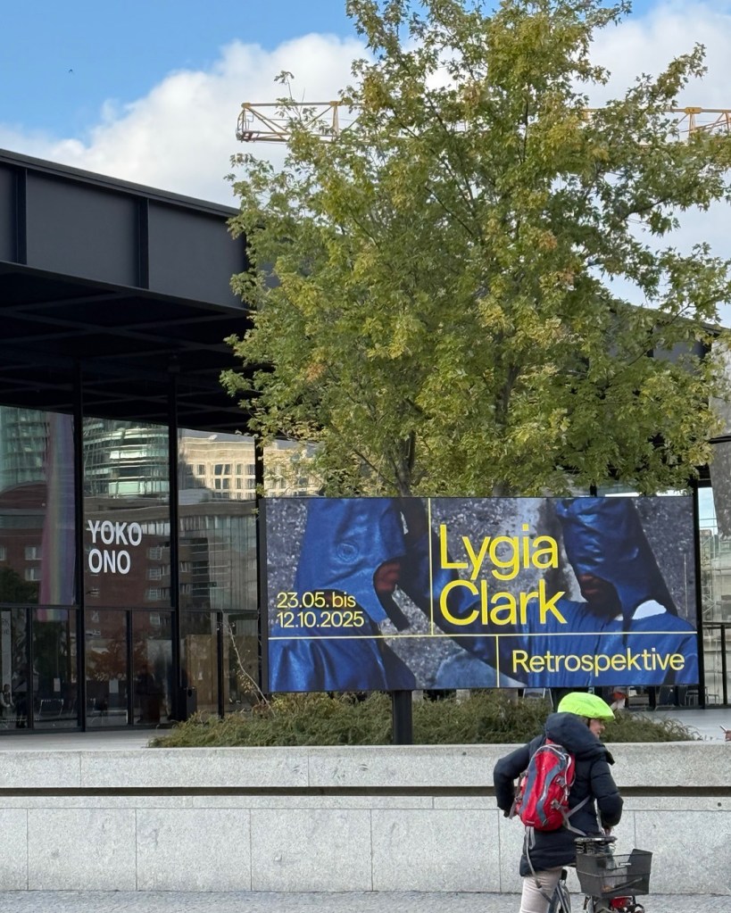 Nos anos 1960 (Obs: corrigido, em 6/10/25, por Marlon Miguel, “A primeira expo da Lygia na Alemanha foi 1963 ou 64” em Stuttgart), a então Alemanha Ocidental foi um dos primeiros países a reconhecer a arte inovadora de Lygia Clark. Esquecida nas últimas décadas, agora, essa exposição vem atraindo grande público à Neue Nationalgalerie. Ela cobre toda a carreira da artista, das telas concretas nos anos 1950 nas quais aboliu as molduras às obras conceituais, incluindo os “bichos”, instalações e demais objetos sensoriais. Sobre estes, como Marlon Miguel me ensinou, Caetano Veloso dedicou uma canção em seu primeiro álbum londrino:  “If you hold a stone / hold it in your hand…
